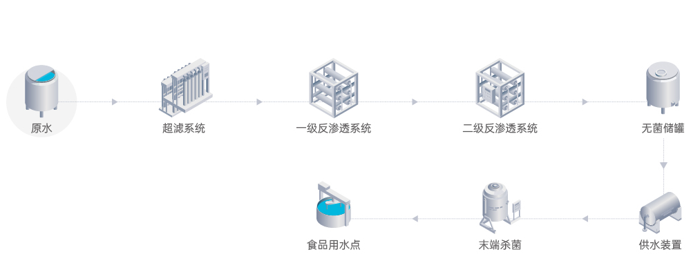 市政自來水已經(jīng)不能滿足食品、飲料、乳制品等行業(yè)用水的要求。中國正在食品飲料行業(yè)實施食品生產(chǎn)許可證制度(SC),規(guī)定中要求工藝水及成品水均需要用凈化后的水。