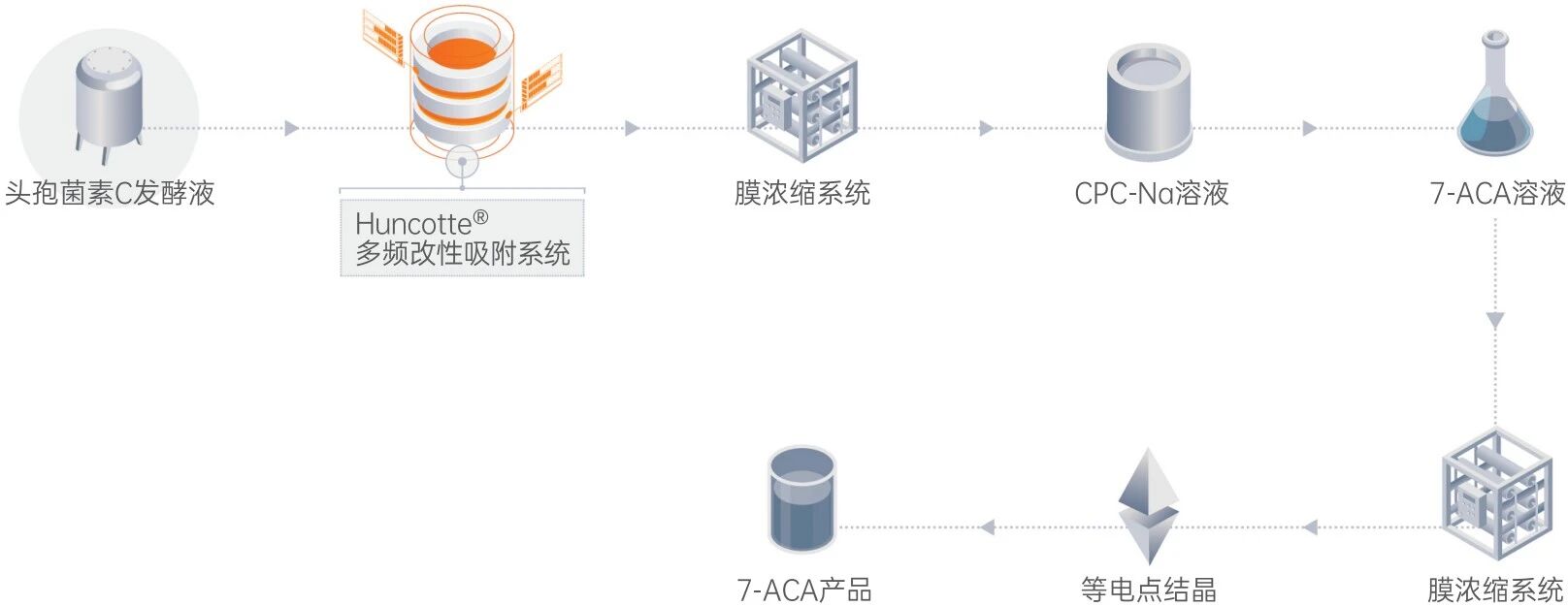 通過自主研發集成化工藝包系統,替代傳統板框過濾工藝,實現濃縮效率提升5%以上,能耗降低15-20%,運營成本減少10-15%。該技術已廣泛應用于氨基酸、有機酸、酶制劑、維生素、抗生素及核酸類藥物生產,顯著提升產品得率和質量穩定性。